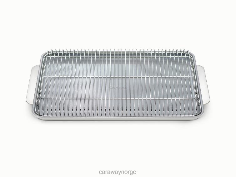 for alle dine bakebehov er vår store bakeplate og kjølestativ duo designet for å gjøre livet ditt på kjøkkenet så mye enklere. det 18 x 13″ store bakeplaten har en giftfri, naturlig glatt keramisk overflate og har en perfekt størrelse for kjølestativet i rustfritt stål på 18 x 13″ å hekke inni.