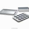 Møt karve sitt 5-delers keramikkbelagte bakewaresett som er fritt for giftige kjemikalier. dette settet inkluderer 2 bakeplater, en muffinsform, rektangelform og skaptilbehør.